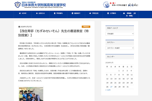 インフォメーション Infomartion メディア情報ページを更新しました。 2026.01.29 日本体育大学附属高等支援学校ホームページに「特別授業」について掲載されました。 詳しくは、こちらからご覧ください。 前の記事へ インフォメーション一覧へ